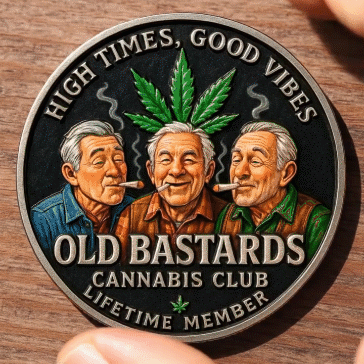 The circular emblem reads “OLD BASTARDS CANNABIS CLUB”, arched with confident, unapologetic typography.