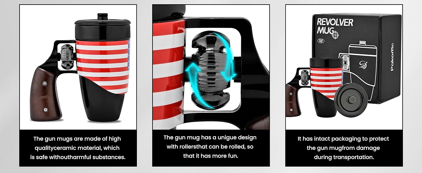 💝Its unique design makes it a stylish and elegant gift choice. Whether for friends or family, the revolver mug stands out as a captivating gift. It adds an eye-catching touch whether placed at home, in the office, or any other setting